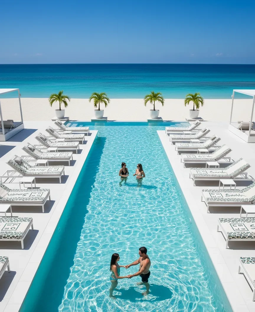Its subtle prints tell a story — a path, a presence, a mystery. Its soft, lightweight texture offers ultimate comfort, whether on warm sand or beside turquoise waters.