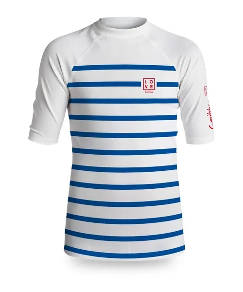 Discover the LOVE Caribbean unisex short-sleeve lycra, designed to support your active lifestyle and moments of relaxation by the sea.